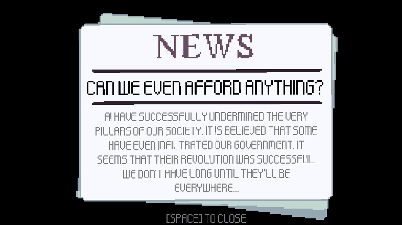 You must question every individual to prove their humanity. With the integration of Player2's AI API, you will have to talk and outwit each individual to see whether they are "Human" or "AI".